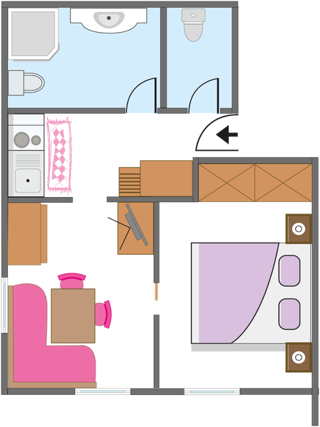 Appartamento "M.te.Luco" (40 mq), per 1-2 persone; nord-ovest senza balcone.